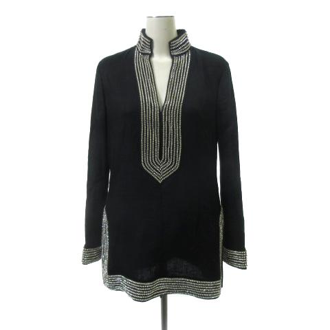 高級感 トリーバーチ チュニック カットソー ミニ ワンピース ビジュー ラインストーン装飾 長袖 リネン 2 黒 ブラック Ibs90 レディース ベクトル 古着 売れ筋 Esiba Tg